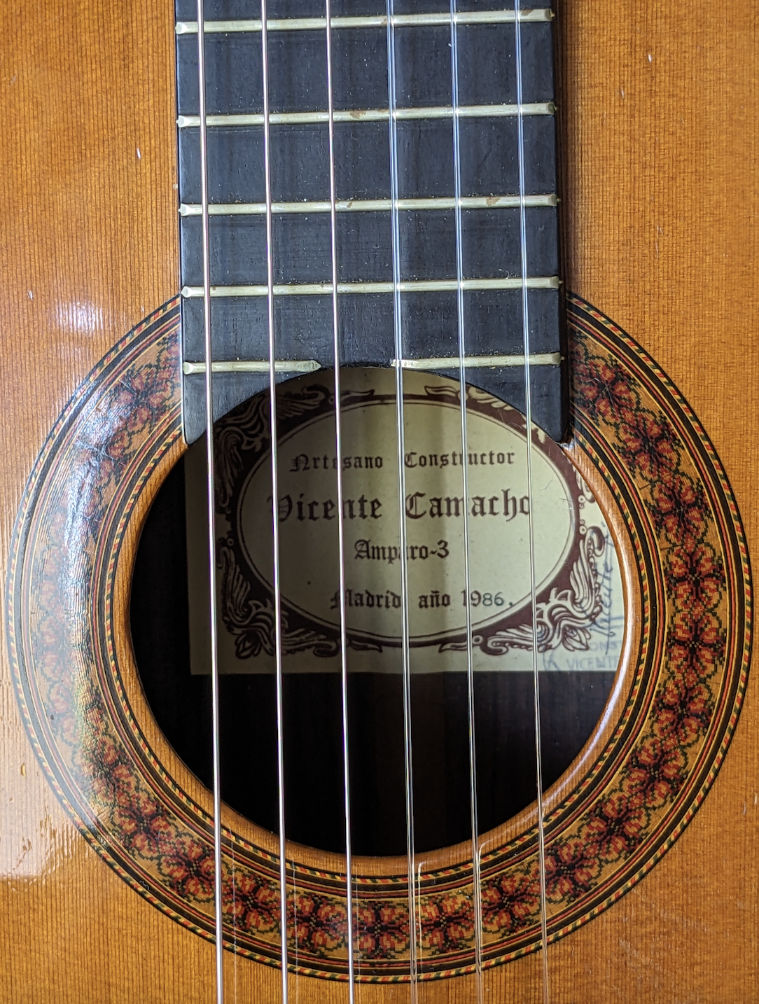 Pre-Owned 1986 Vicente Camacho Spruce top guitar with Brazilian Rosewood sides. Made in Madrid. Scale length 652mm.